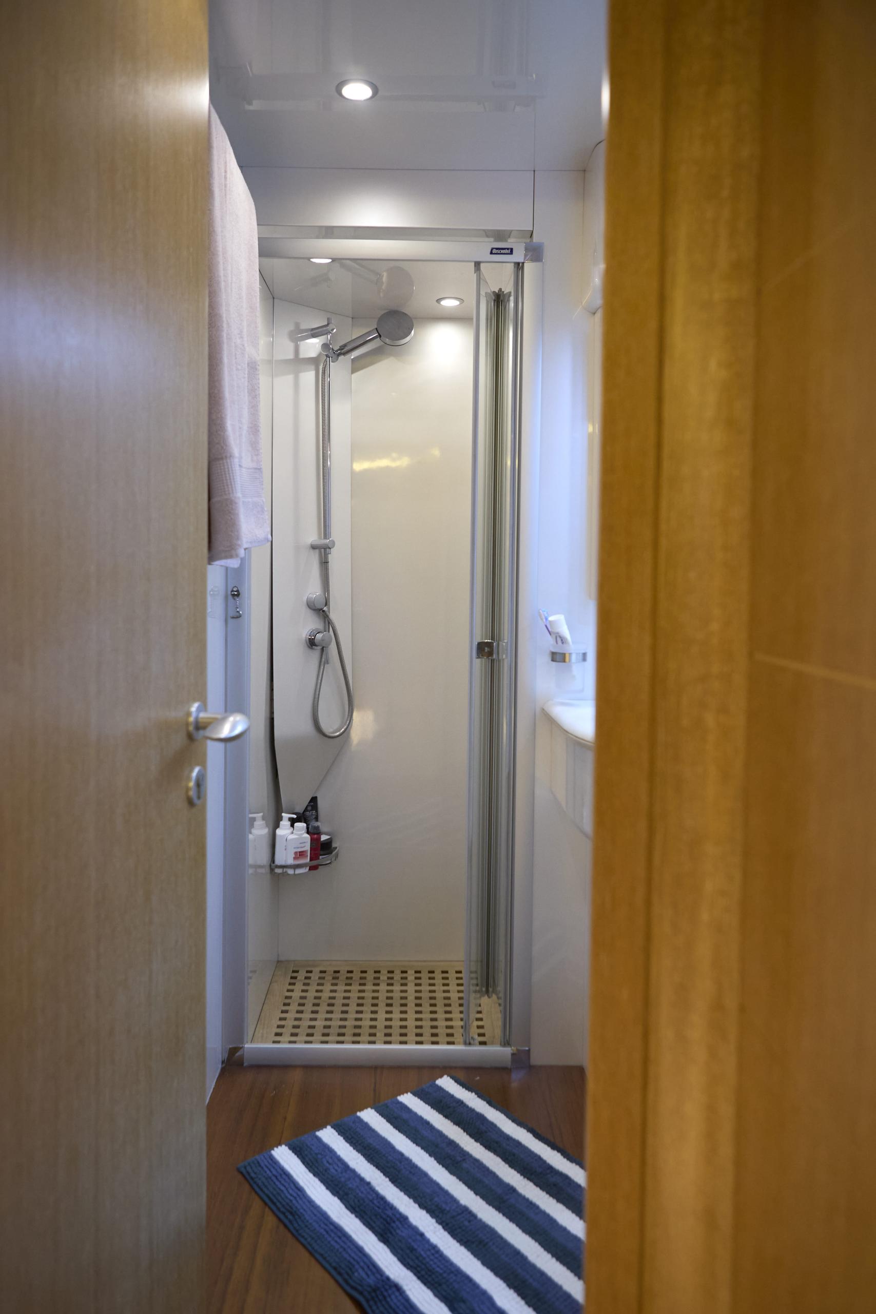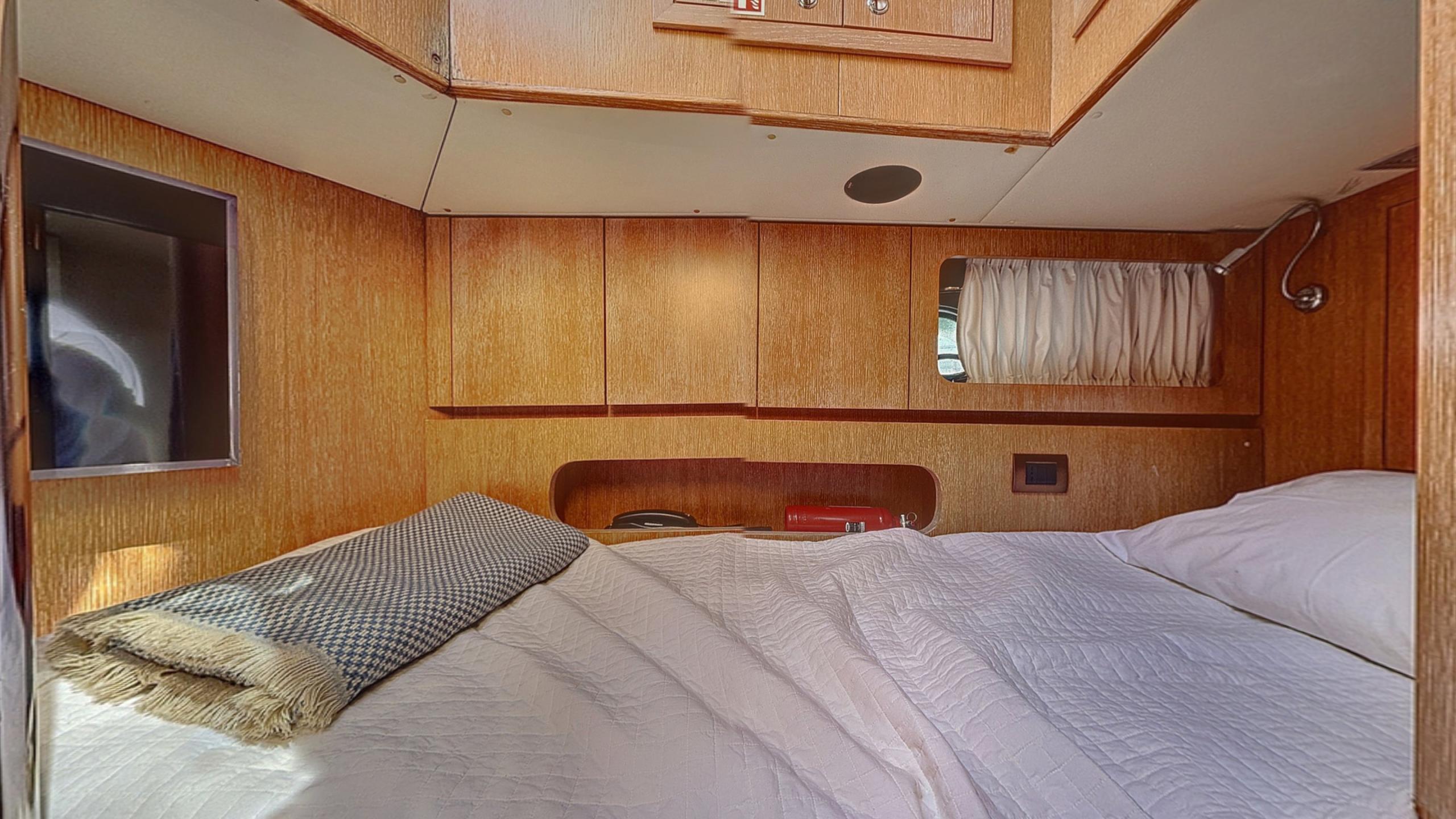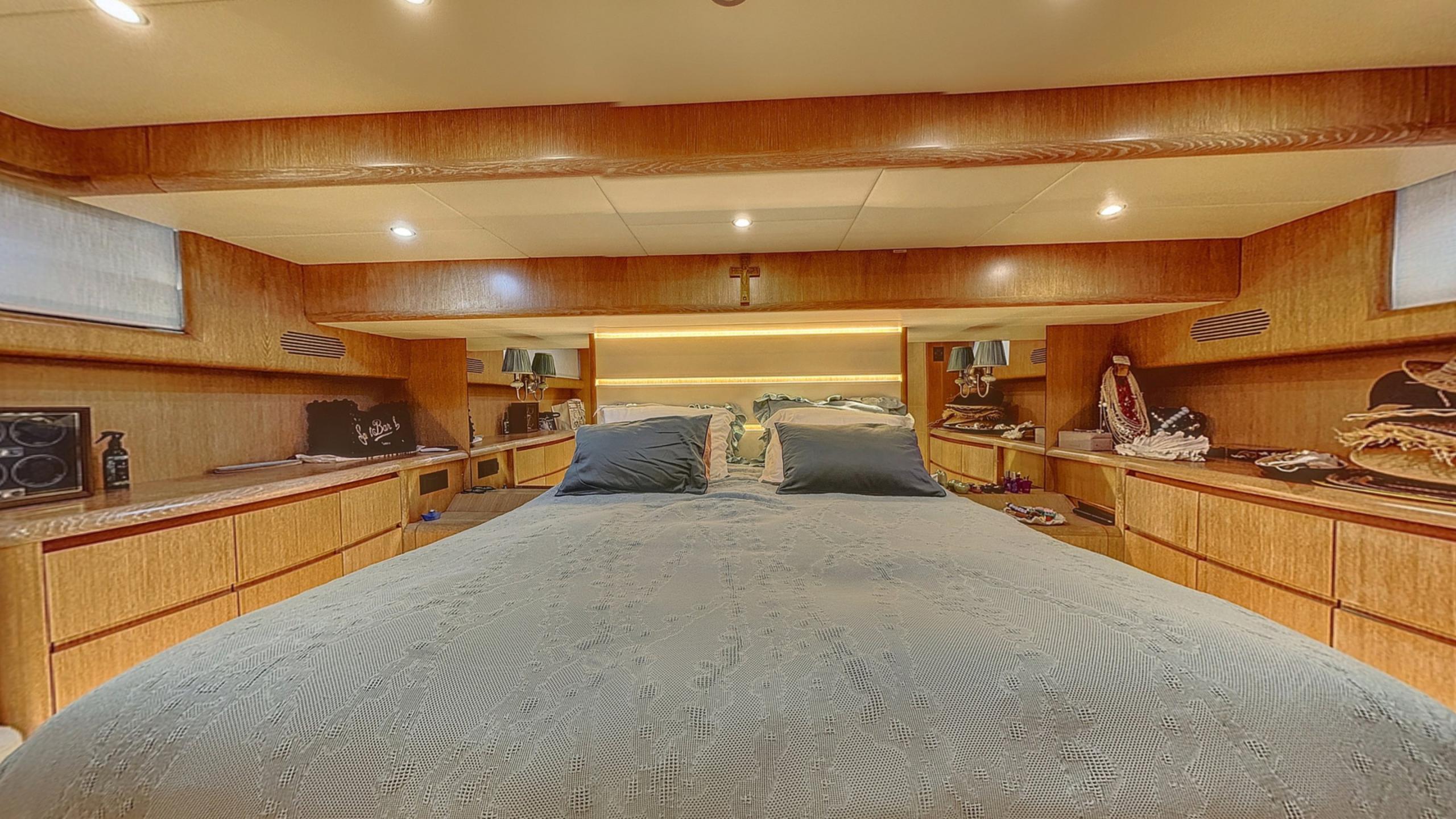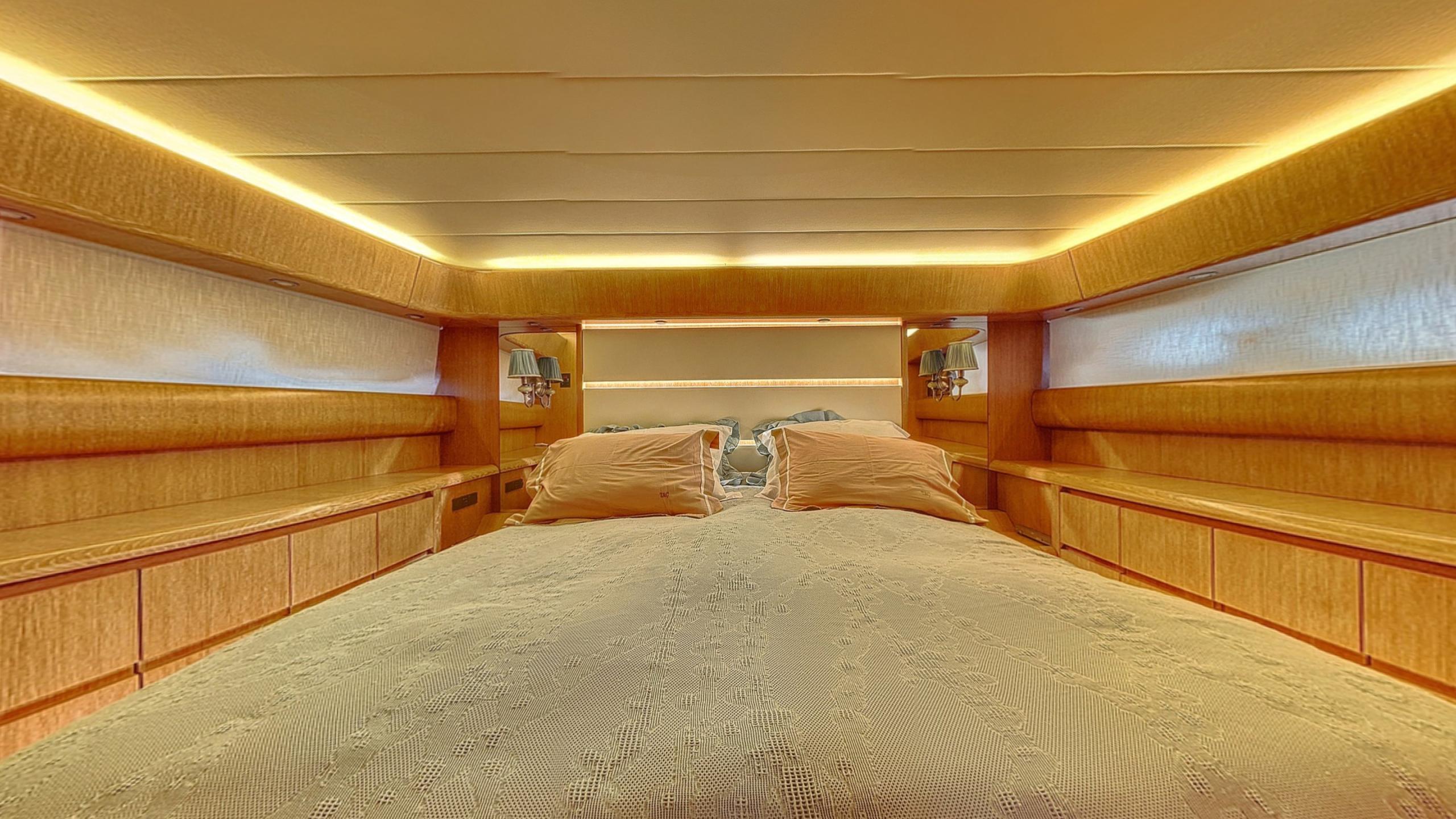 Her 3-cabin layout features two double cabins and a twin, providing elegant accommodation for six guests, complemented by upgraded smart TVs, a 2024 Bose sound system, and all-new custom mattresses for maximum comfort.