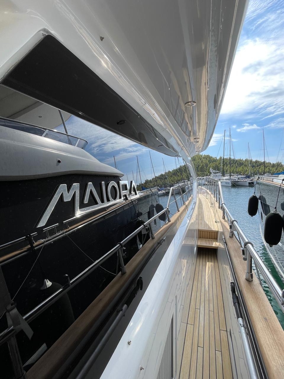 With a full teak deck, new wood interior flooring, and sleek modern finishes throughout, this Maiora is an ideal option for owners seeking a refined and capable motor yacht in excellent condition.