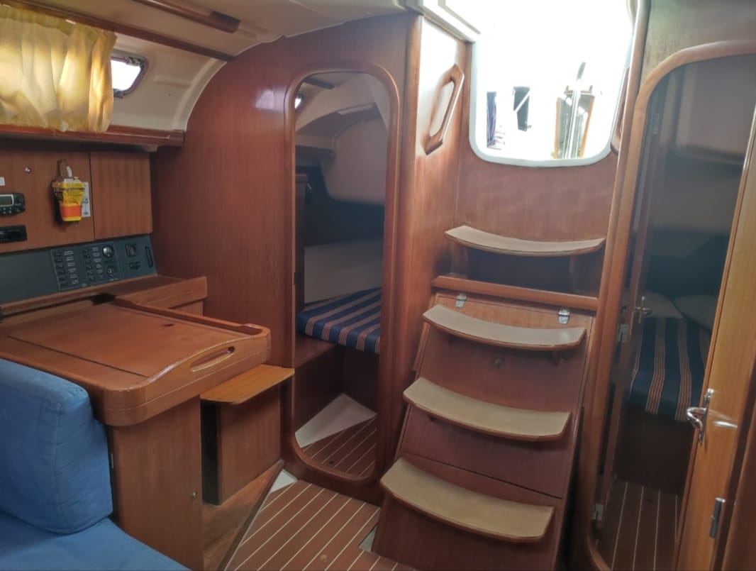 She is powered by a Volvo D2-40HP engine with saildrive, supported by a documented overhaul history and a comprehensive onboard equipment list. The yacht benefits from recent sail upgrades (2021), modern Raymarine navigation electronics, solar power capability, and a practical cruising inventory that enhances autonomy and onboard comfort.