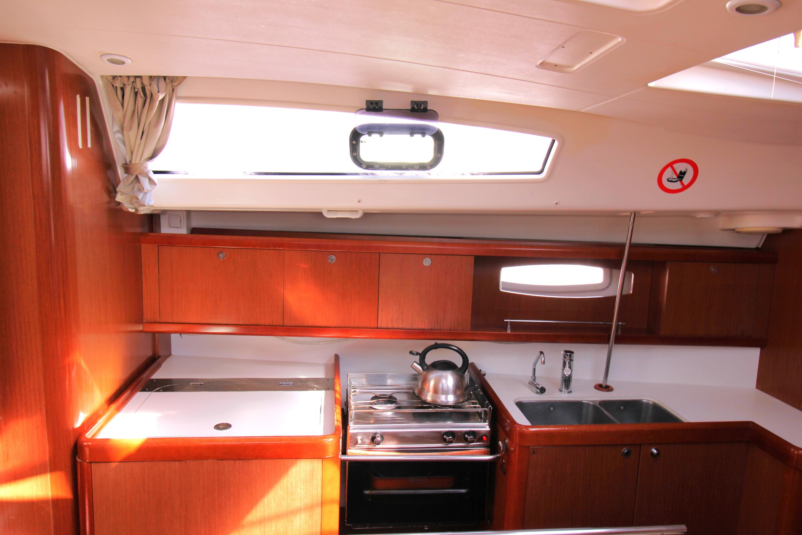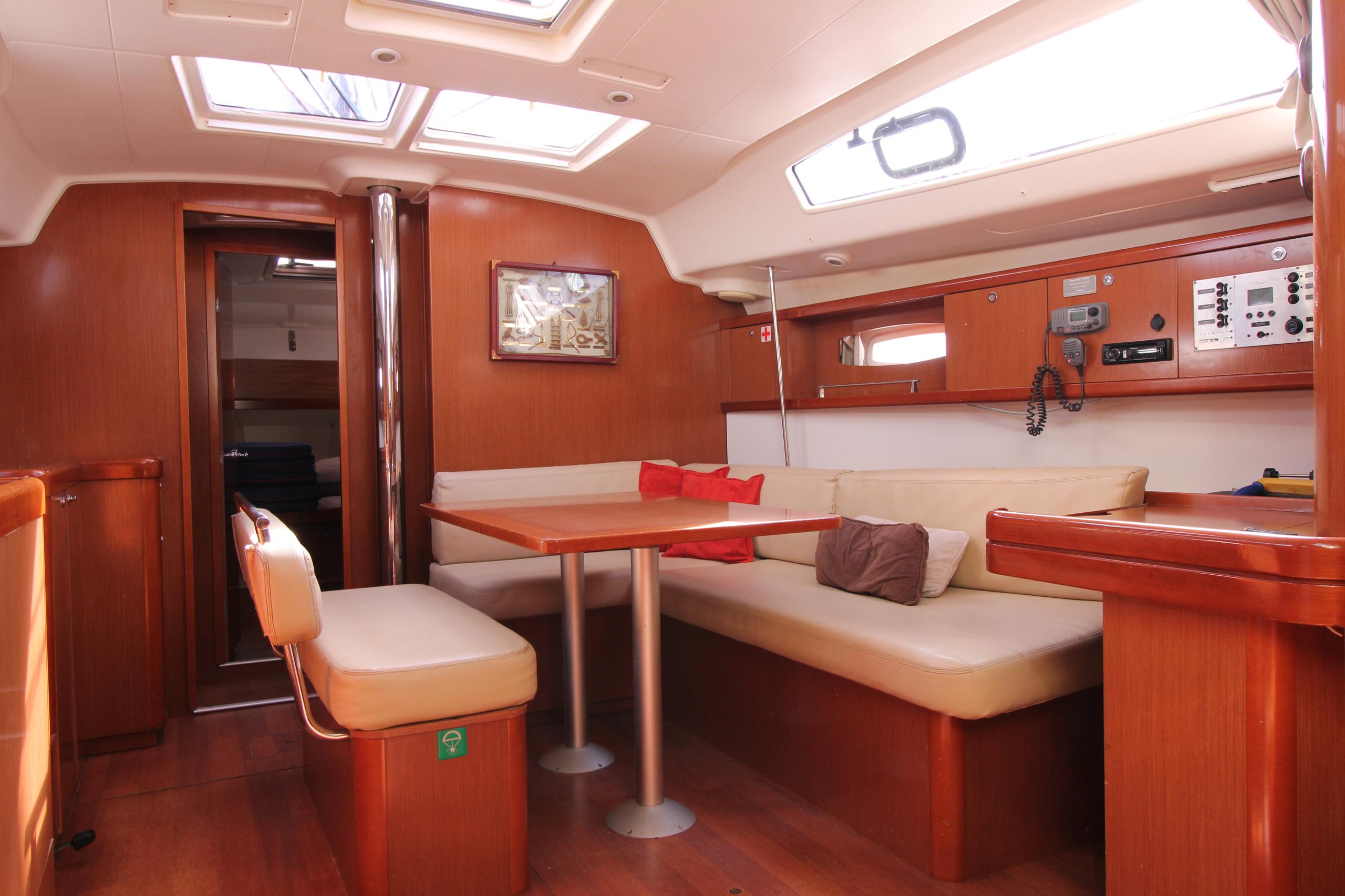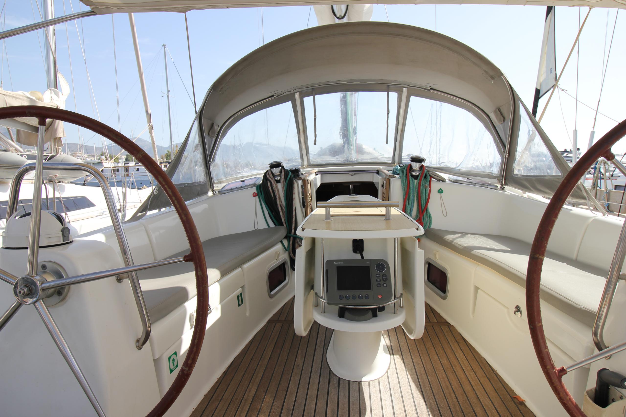 Equipped with a battened mainsail (2022) and furling genoa, she delivers reliable sailing performance, while her bow thruster and electric winch for the mainsail provide effortless maneuverability and sail handling.