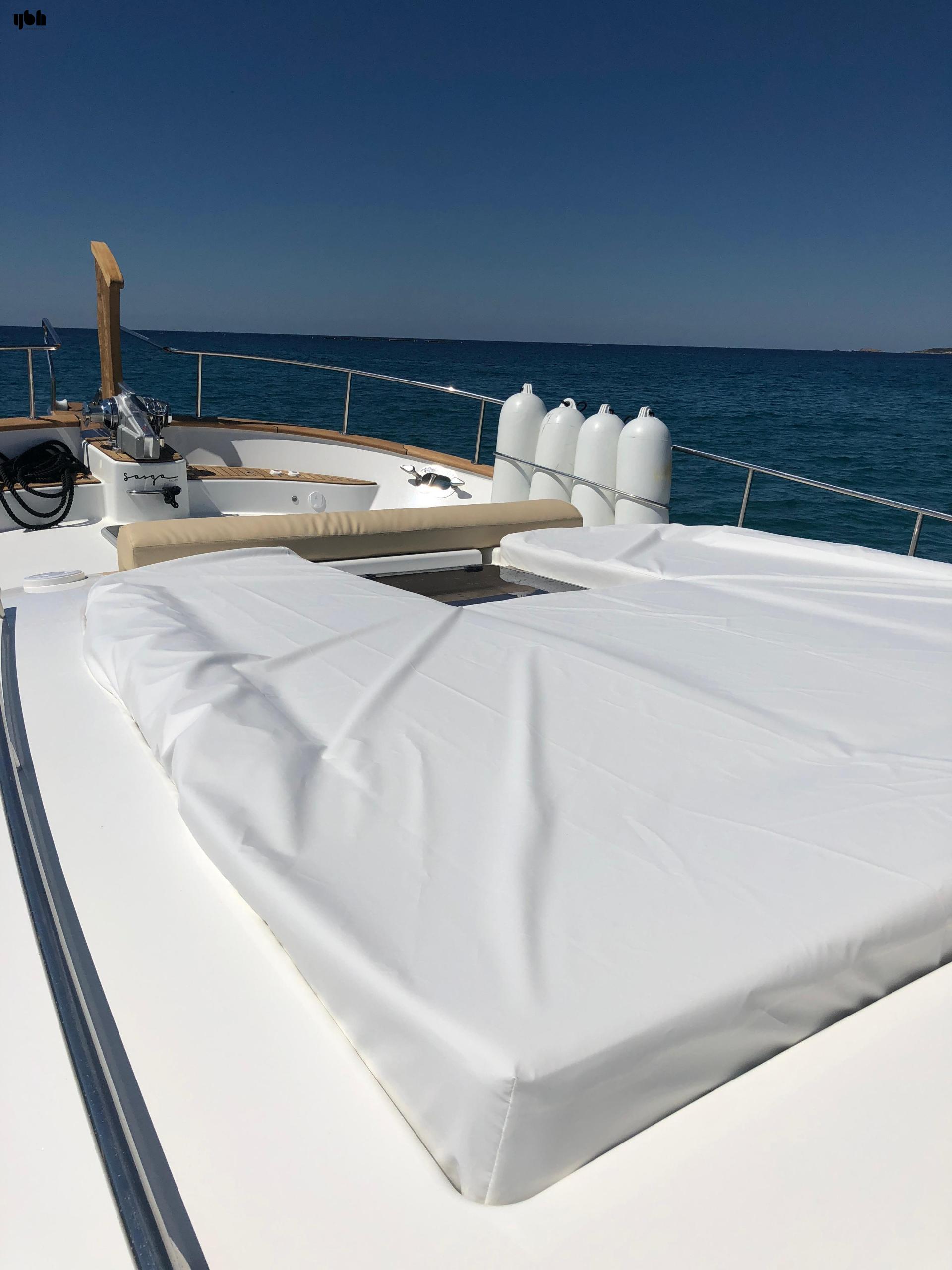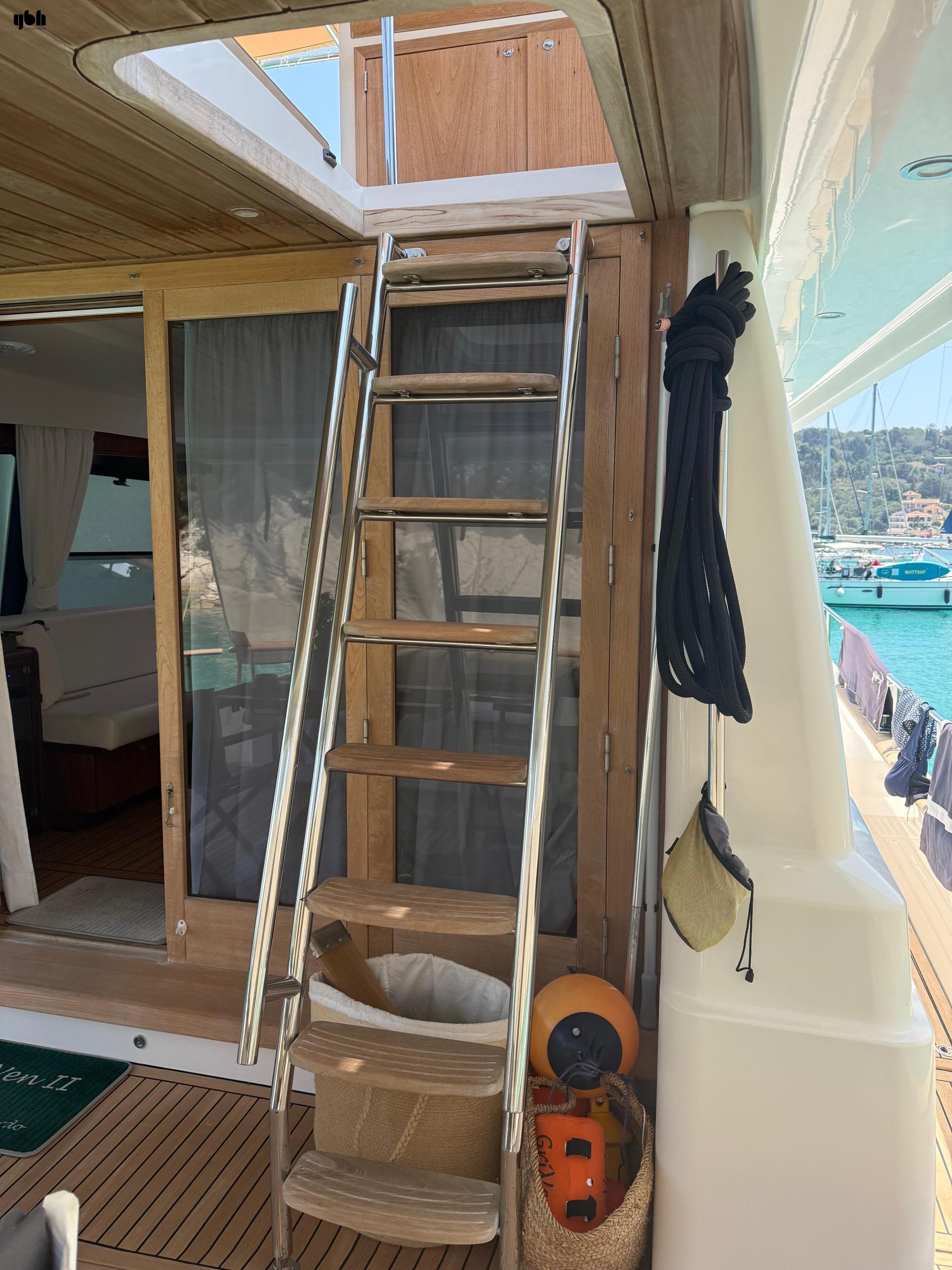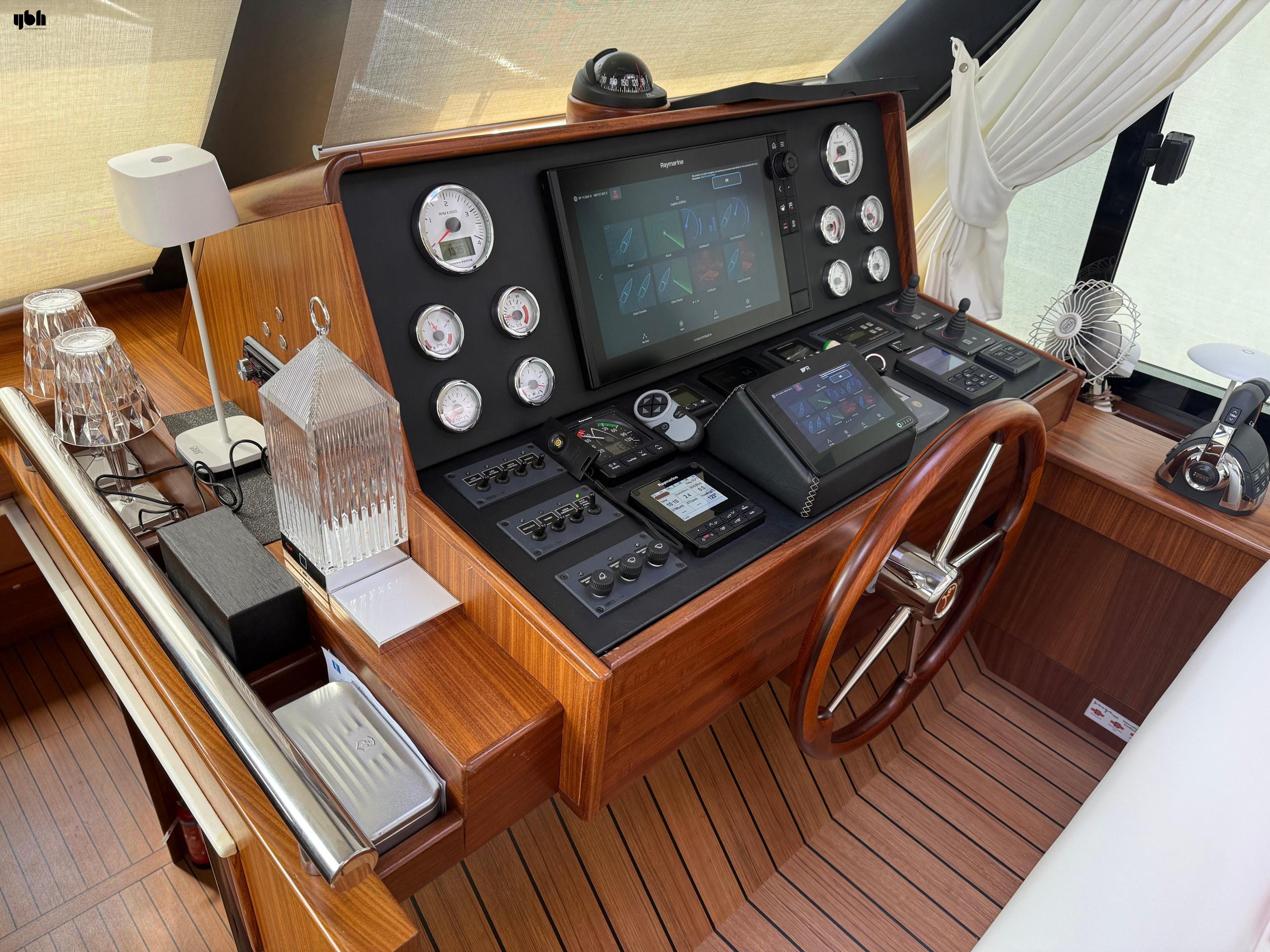 Equipped with Humphree electric dynamic stabilizers, bow and stern thrusters, hydraulic stern platform, retractable gangway, 10 kW generator, Yacht Controller, and Prospeed treatment on shafts and propellers.