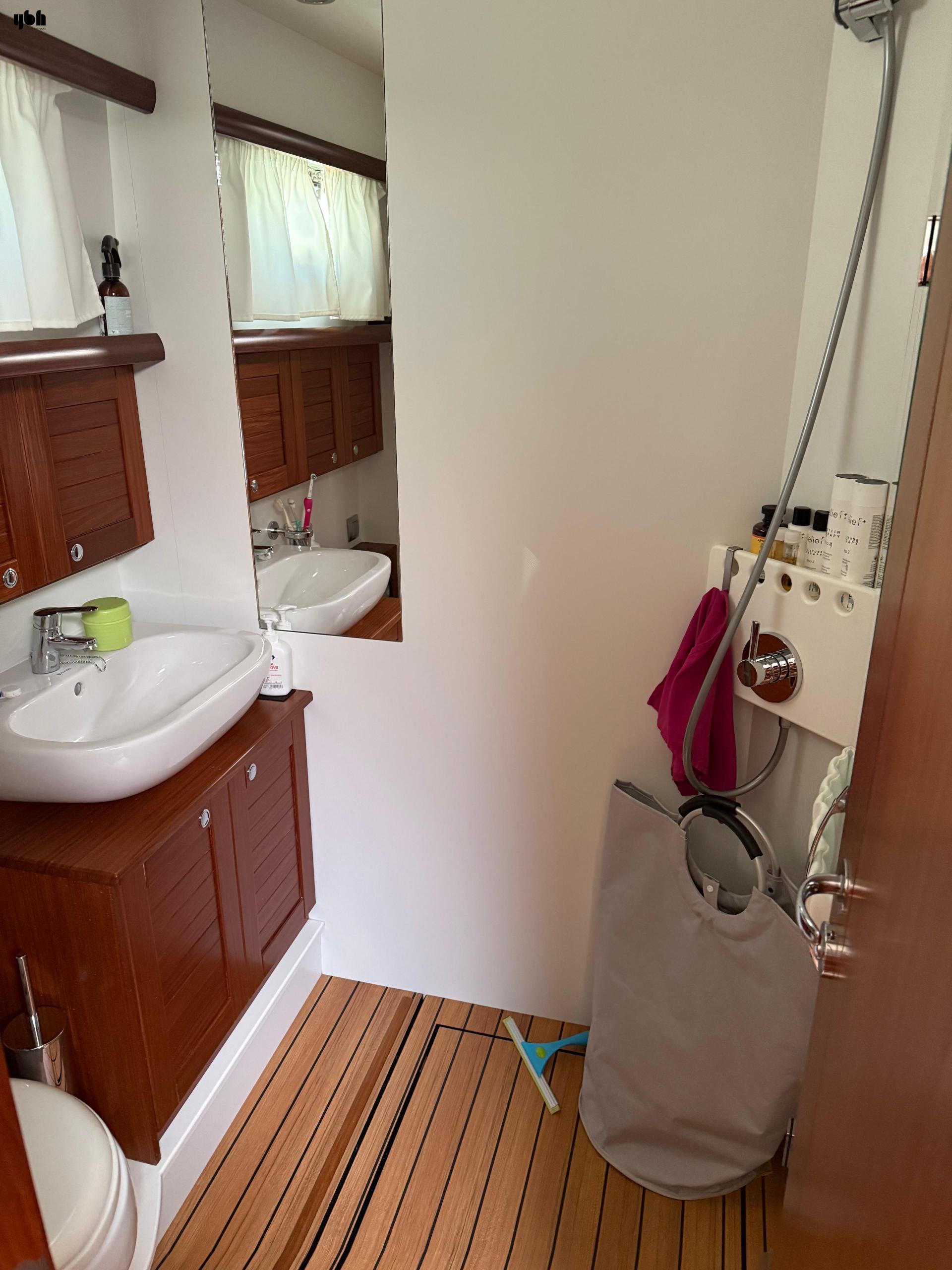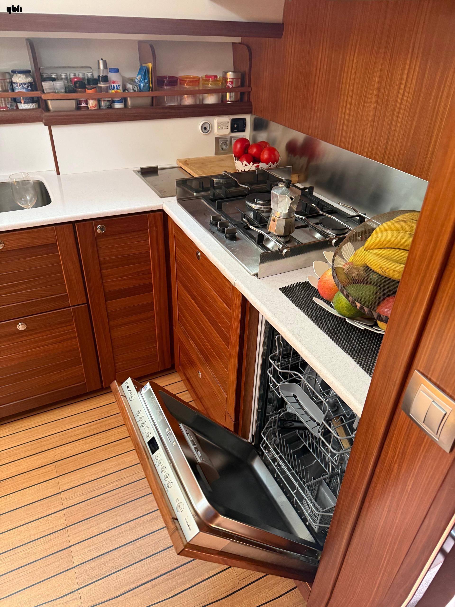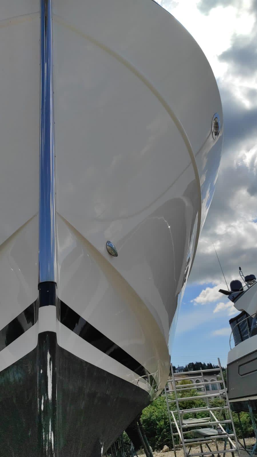 Equipped with Humphree electric dynamic stabilizers, bow and stern thrusters, hydraulic stern platform, retractable gangway, 10 kW generator, Yacht Controller, and Prospeed treatment on shafts and propellers.